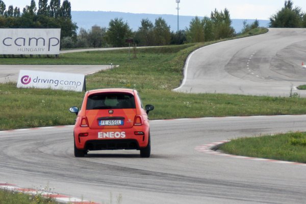 Ha már az indokolatlan váltogatás szóba került, emlékezzünk meg a váltóról. A felségemnek van egy dízel 500-asa, direkt azzal mentem, hogy friss legyen az élmény. A normál 500-asokban olyan váltó van, ami üzemszerűen akadósan működik, már többel mentem, ez ilyen. Kíváncsi voltam, ebbe bele merik-e tenni azt a szart. Szerencsére nem merték. Ebben rendesen kapcsolható, pontos kis váltó van, nem kell figyelni, hogy ne reccsenjen a hátramenet, mindössze egy hatodik fokozatot hiányoltam. Keresni kezdtünk egy helyet, ahol normálisan tudunk vele autózni, mert ezt péntek délelőtt Budaörs környékén nehezen lehet megtenni a közlekedési szabályok durva meghágása nélkül, így kerültünk a Drivingcampbe, ahol szinte azonnal fogadtak bennünket, ezúton is köszönet érte. Az első néhány ismerkedő kör után, ahogy egyre jobban képbe jöttünk a pályával, érzéssel elkezdtük kinyomni a szemét. Csak kulturáltan, ahogy Csámpai továbbszolgáló szakaszvezető mondta, mikor elmesélte, hogy ütötte le nevelési célzattal a bukósisakjával az asszonyt, meg az őt megszöktető szeretőt.