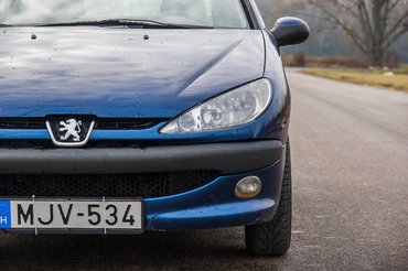 A tesztautó egy 2004-es, ötajtós darab, 223 ezer kilométerrel, amire igazán furcsa kettősség jellemző: szép a fényezése, nem rohad sehol, mint sok másik 206, jól állnak az elemei, viszont ezek mellett dugig van igazán hülye esztétikai hibákkal. Csak hogy pár példát említsek: mindkét oldalán hullámos kulcskarcok vannak mélyen beleágyazódva az oldalába. A keletkezés okait nem szerettem volna firtatni. A gumik vadiúj Falkenek, viszont a dísztárcsákat levelesre darálta az előző tulajdonos. A lámpák gyönyörűre polírozottak, a géptető elején viszont csúnya horpadásokat láthatunk, valószínűleg valaki szerette kicsit delejesebben csukogatni a géptetőt. Sorolhatnám estig az ilyen ellentmondásokat.