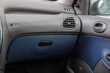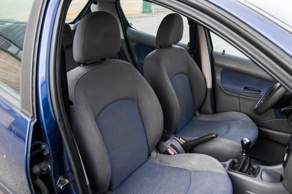 Ezt a példányt feldobják a kék színű, kárpitozott betétek: farmerszerű anyagból készültek, még a kesztyűtartóra is jutott belőlük, így nem tűnik olyan egysíkúnak a színvilág és az anyaghasználat. Ugyanakkor a kárpit extrémen vonzza és magában is tartja a koszt, nem egyszerű tisztán tartani.