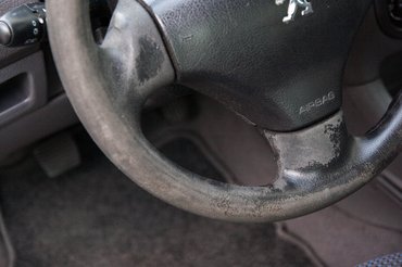 A beltér kellemesen egyben van, minden tekintetben: nem nyiszognak és nem is szeretnének leesni az alkatrészek. Az ülések őrzik nagyjából azt a formát, amilyenre megálmodták őket, ugyanakkor a szürke kárpit már nem néz ki olyan jól ennyi idősen. Kopásokat is csak elvétve találunk: úgy tűnik, a műanyagoknak csak a külleme és fogása szar, a minősége nem. A kormány a nagy kivétel, ami előtt tanácstalanul állok. Vagyis ülök. Mintha reszelővel gyilkolták volna évekig, kegyetlenül elkopott. Nagy kár, mert a formája, a pozíciója és a fogása alapvetően rendben van.
