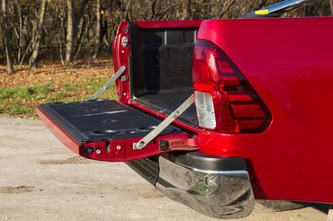 A duplakabinos kivitel hét centivel hosszabb lett az elődnél, miközben tengelytávja nem változott. A szélesség két centivel, a magasság mindössze féllel több. Ami viszont egy pickupnál lényegesebb, az a plató mérete. Az új Hiluxé minden tekintetben felülmúlja a korábbit, van viszont egy nagyon bosszantó hibája: a platóbélésen egyetlen árva rögzítési pontot sem találunk, így gondjaink lehetnek, ha nem csak két-három cementes zsákot dobunk be hanyagul, hanem valami komolyabbat szállítanánk. Magasabb rakomány felpakolásánál érezhetjük magunkat a legkellemetlenebbül, de én csak néhány autóalkatrészt szerettem volna hazavinni vele. A műanyag Corolla-lökhárítót inkább betetriszeztem az utastérbe, nem mertem megkockáztatni, hogy lepattogjon.