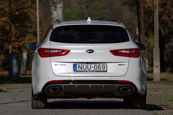 Bár sportkombinak definiálják, szerencsére inkább kombi, mint sport. A terminus technicust az Alfa találta fel, és ragaszkodott is hozzá, de ott annyira nem számított, mekkora a csomagtér. A Kia viszont használható, 552-1686 litert ad, az esztétikum sem szenvedi meg a puttonyt. Hopp, oldalról mintha a legutóbbi Accord kombit látnám. (Margóra kívánkozik a megjegyzés, hogy ritkán látni olyan tökéletesen kivitelezett önherélést Európában, mint amilyet a Honda mutatott be azzal, hogy kivezette a piacról az Accordot, még mielőtt kiderült volna, hogy a sok direktbefecskendezős-kormos vacak mellett mennyire megbízható és alulértékelt.)