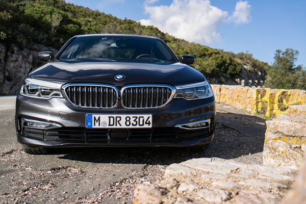Az első 5-ös, amit megláttunk a reptéren, a mai szokásoknak megfelelően plug-in, azaz tölthető hibrid volt, pedig marhára nem ezt jöttünk vezetni. Mindenesetre a hátsó tengely előtt már befér egy akkora akkucsomag az utasok feneke alá, amivel akár 50 km-t is elmegy az 530e-nek hívott változat, amely 1,9 litert fogyaszt :).