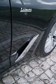 Valahogy az új forma mégis rafináltabb, nagyon szép részletek vannak rajta. Elöl, rögtön a sárvédő mögött, ahol a „shadow line” ered (ez az a markáns vízszintes vonal, amitől klassz, hosszú limuzinnak látjuk az 5-öst), szóval itt ered egy finom kis él, ami egészen a Hoffmeister Knickig, vagyis az ablakok hokiütő-szerű végéig tart. Oldalról az is nagy segítség a G30-as gyári kódú limuzin felismerésében, hogy a kerékjárat mögött megjelent az a kis álcázó lemezke, ami mögött ott a rés, ahol a levegőáram távozik a kerékjáratból. Hát ennyi.