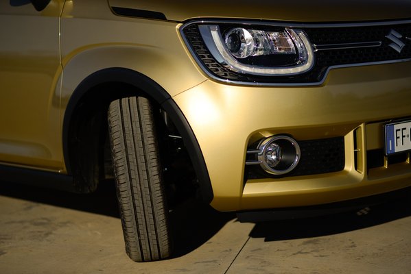 A vezetési élmény annyiban hasonlít a régi Ignisére, hogy valójában ez sem egy magas autó, és elég jól lehet vele kanyarodni. Kicsit keményebben fut a kelleténél, már természetesnek vettem, hogy a túl sportos gumiprofil miatt, de nem: ez virsli. És milyen virsli! 175/60 R16, arányaiban olyan, mint a BMW i3 szemből ugyancsak bizarr abroncsai. Ezek miatt is kemény lehet a futás, hiszen nem a /60 a lényeg, hanem a kevés rugózó levegő az abroncsban. Egy kolléga meg is nézte gyorsan a neten, és mindnyájan meglepődtünk, de lehet gumit kapni ebben a méretben, téli-nyári függvényében akár már 13 ezer forintért. Viszont a futóművön nagyon kéne puhítani, abból az egyszerű okból, hogy mint említettem, a hülyékre nem lehet alapozni. Ezt a beállítást is meg kell persze jegyezni, és majd a harmadik modellévben elsütni a Gti-változatban.