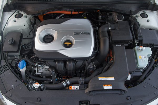 205 kombinált lóerő meg az összesen 375 Nm (a kétezer köbcentis GDI-motor és az állandó mágneses szinkronmotor együtt hozza össze ezeket a számokat) ha nem is rángat, de lendületesen mozgat egy ekkora testet. Ám francnak sincs kedve nagyon sportolgatni, hiába lehetne akár a váltó karját balra húzva fel-le böködve kézzel is kapcsolgatni a fokozatok közt. Egyrészt, az autó karakteréhez nem illik a forszírozott motorból előtörő, kicsit nyers, négyhengeres hang, másrészt meg visszaváltogatva közel nulla motorfékünk van.