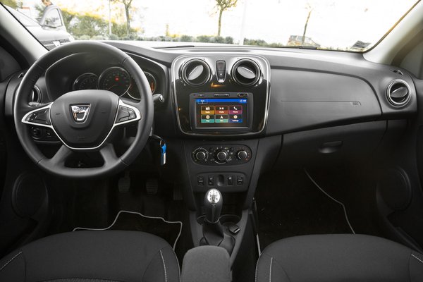 Az utastérben annyi változott, hogy mostantól egy fényes, szénszálra emlékeztető dekort is rendelhetünk az ajtóbehúzókra és a középkonzolra, de újdonság még a középre helyezett hátsó elektromos ablakok kapcsolója, és a négyküllős kormány is. Az egyik leghasznosabb fejlesztés mégis a tolatókamera bevezetése. Nem kell megijedni, a Dacia nem kezd féktelen urizálásba, kiemelték, hogy sem elektromos kézifék, sem parkolást segítő elektronika nem lesz a jövőben, mert a cél továbbra is a költségek alacsonyan tartása. Alapfelszereltség lett viszont az emelkedőn való elindulást segítő elektronika, ezt a féket baromi erősen taposva lehet bekapcsolni.