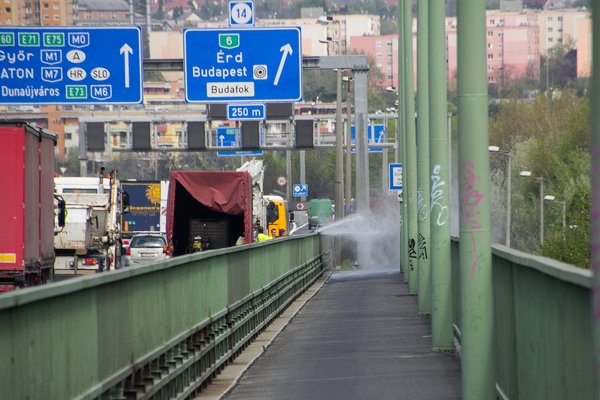 Egy akkora szerkezet, mint az M0 Hárosi Deák Ferenc Duna-híd, teljes korrózióvédő és esztétikai újrafestése nagyjából 600 millió forintba kerül, ezért egyáltalán nem mellékes, hogy sikerül-e ennek ciklusidejét 20-30 százalékkal meghosszabbítani rendszeres, évenkénti mosással, ami kijön néhány millióból. Éppen ez volt a célja annak a munkának, amelyben részt vehettünk a Kifü-Kar Kft. alkalmi bedolgozójaként.
