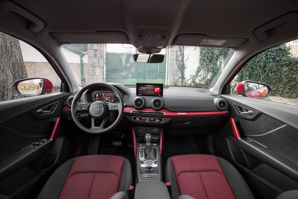 A minőségre nem lehet panasz, odabent kellemes tapintású minden, amihez az nyúlunk, spórolást talán inkább csak szándékosan éreztetik itt-ott, hogy a vevő tudja, az Audi-nirvána három modellel feljebb van. Külön tetszik, hogy a belteret a külsőre rímelő színű piros betétekkel díszítik, ami ugyan műanyag, de ugyanúgy megtöri az egyhangúságot, mintha szálcsiszolt fém lenne. Elöl bőséges a hely, növeli a térérzetet, hogy az A-oszlop olyan vékony, mint utoljára a nyolcvanas években.