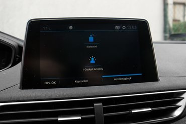 Aztán ott vannak a vicces dolgok, mint az iCockpit Amplify csomag, ami hardvert nem sokat tartalmaz: egy beépített, három illatot tartalmazó illatosító, amit a menüből lehet állítani. A több már a fekete mágia, az alkalmazások menüpontban kétféle „hangulat” állítható be: átszínezi a műszeregységet, kiválaszt egy illatot és az egyiknél bekapcsolja a sport üzemmódot. Elsőre kissé meglepett, mert ugyanolyan gázállással megugrik a kocsi, de hát a francia logika már csak ilyen. Akinek ez megér 65 ezret, fogyasszon! Kábé ugyanez a véleményem a Grip Controlról, ami speciális gumikkal és egy tekerőgombbal akarja elhitetni, hogy terepezni is lehet a kocsival. Lehet is, mert kifejezetten magas a hasa, de ahol nem megy el a 3008, nincs az a kipörgésgátló szoftver, ami segít.