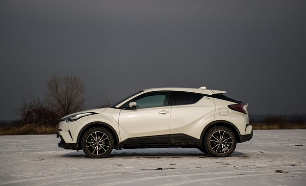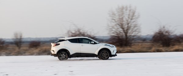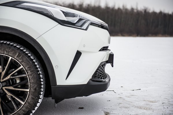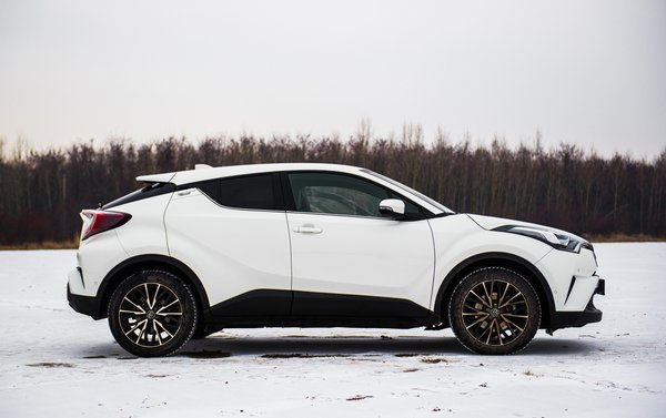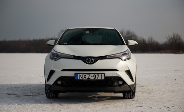 Ráadásul jó! Ha ilyet lehet építeni a Toyota új globális platformjára (TNGA), hát csak hajrá! Univerzálisabb, mint a VW MQB-je, hiszen első-, hátsó-, és összkerekes is lehet. Ettől persze nem biztos, hogy egyik platform jobb volna, mint a másik, de ki sem zárja. Egyelőre az új Prius és ez van rajta, és a hamarosan befutó Camry lesz. A C-HR-t pedig ezzel az 1,2-es benzines turbóval nekem találták ki. 114 ló, nem egy eszeveszett literteljesítmény. Maga az autó nem könnyű, 1365 kiló, ami ugye bő két mázsával több, mint a Juke, de nagyon nem olyannak tűnik. Fickós, kezes, élvezet vele minden perc. Illetve élvezet lehet, mert a teszthét alatt többnyire hó volt, ez a C-HR pedig elsőkerekes kivitel, ráadásul elektromos benne a kézifék, tehát még hülyegyerekeskedni sem lehetett vele. De ha néha száraz volt az út, nagyon úgy tűnt, hogy hajszálpontosan ez az én világom. 11,1 a 0-100, ami semmi, de karakterre fantasztikusan jó a motor, bár mintha lenne valami műhangja is, amit szerintem enyhén túlzásba vittek.