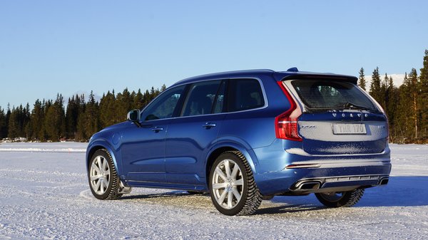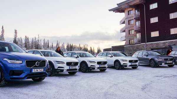 Az XC90 T8-cal kezdtünk, ez az, ami úgy összkerekes hibrid, hogy a négyhengeres benzinmotor és a hátsó tengely között sosincs mechanikai kapcsolat. Ha hátul is kell nyomaték, csak ráküldik a delejt a hátra épített villanymotorra. A biztonság kedvéért elöl, a kompresszoros-turbós motoron is van egy kisebb, a rendszerteljesítmény így 406 lóerő. Amikor elhagytuk a szállodát, kikapcsolták az elektronikus rásegítést, hogy ne fogyjon az amper, amíg elérjük a tavat, hiszen mindössze 30 kilométerre lenne elég az akku, nem tudtak volna a jégen prezentálni.