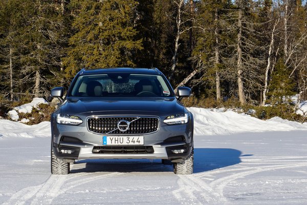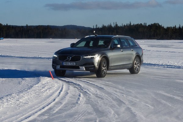 Amúgy érdekes látvány a V40, hiszen ez még nem új Volvo, mint a V90 vagy az XC90, hiába a kalapácsmotívumos fényszóró, látszik rajta, hogy ez még egy korábbi dizájn-éra. Amikor az elektronikára nem jött rá az öt perc, egész jót lehetett vele autózni, az XC90-hez képest legalábbis maga volt a fjordok Caterhamje. A rendelkezésre álló autók közül mégis a V90-est volt a legnagyobb élmény terelni a jégen, hiszen még mindig sokkal könnyebb, mint az XC90, de már van rendes tengelytávja. Dynamic üzemmódban a futóműve is valamivel feszesebb lesz, és az elektronika itt sem kikapcsolható teljesen, de jóval következetesebben hülye, mint a V40-ben. A V90 CC alapból az első kerekeit hajtja, ha ezek elpörögnek, akkor a rendszer hátra küldi a nyomatékot.
