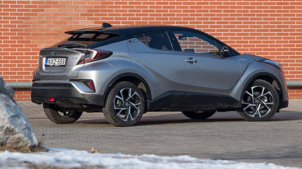 Létrejött egy olyan kocsi, ami majdnem olyan, mint azok a koncepciójárművek, amikre annyira szoktunk vágyni a szalonokon. De mire azokat megkapjuk, szottyadt, fáradt árnyékaivá válnak a porondon forgó nagy ígéreteknek, a C-HR viszont majdnem pont olyan frissen és izgalmasan domborodik-homorodik, lámpát dülleszt, kereket burjánzik, s szinte elvész benne az autóforma, mint a műanyagból készült csoda-tanulmány. Legközelebbi formai rokona talán a Nissan Juke, de a Toyota ötletesebb és egyben ízlésesebb is, tehát annak is tetszeni fog, aki a Juke-ra már azt mondja - „elég lesz már a humorból”. Emez laposabb, szélesebb, emberibb arcú, kicsit tagoltabb, ha innen nézem, hipermodern módon elegáns, ha onnan, absztrakt alakzat, de sehonnan sem annyira dadaista, mint a Nissan hasonló crossovere. Ja, majdnem elfelejtettem – fél mérettel nagyobb is annál, tehát használhatóságát tekintve már inkább Qashqai. Értsd: ha nem is különösen tágas, pláne a befelé dőlő oldalfalak miatt, akkor is van benne igazi hely négy valódi embernek és mérsékelt mennyiségű csomagjaiknak.