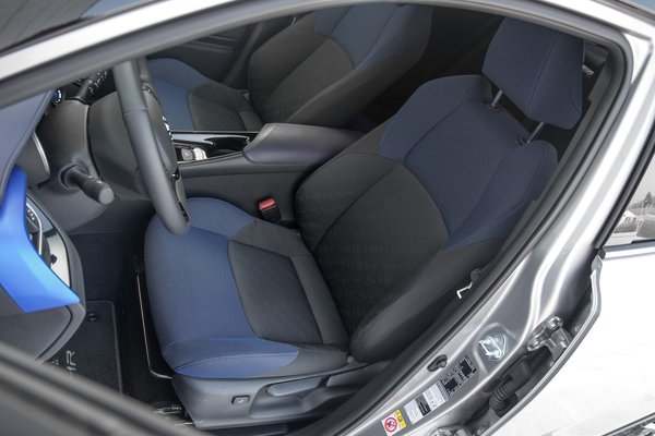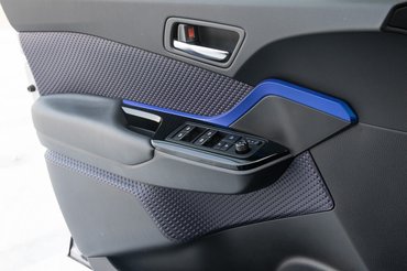 Bár az alaphangulatot odabent egyfajta kékeslila szín adja meg – ilyenek a betétek, a kijelzők, egyes gombok, az élek -, ami nem sok jót jelent - az összbenyomás inkább jópofa, mint steril. Ez mondjuk, nyilván amiatt is így van, hogy egy csomó, drága, puha műanyagba és bevonatba invesztált a Toyota – ameddig a kéz elér, mindenütt finom cuccokat nyomkodhatunk, még a műszerfal teteje sem kemény, sőt, a központi kijelző kerete is lájtosan gumírozott. Utóbbi kapcsán egyben azért óvatosan megjegyzem: csak maradjon is rajta az a bevonat sokáig, mert ezek a rétegek gonoszul le tudnak mállani némi napsütés és pár évnyi kint állás együttes hatására...