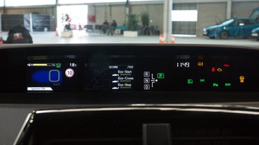 A műszerek ötletesen mutatják az energiafelhasználást, látjuk mikor, mire váltunk, mikortól termelünk vissza. Idővel egészen rákattantam az akku helyzeti energiával való töltögetésére, de a többi közlekedő nem feltétlen partner az efféle környezetvédelemben. Néha tényleg a haladás rovására megy, hogy közlekedés közben véletlen se menjen a felső harmadba a sáv, mert akkor már indul a benzinmotor és belerondít az addig gyűjtögetett eco-pontjainkba.