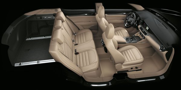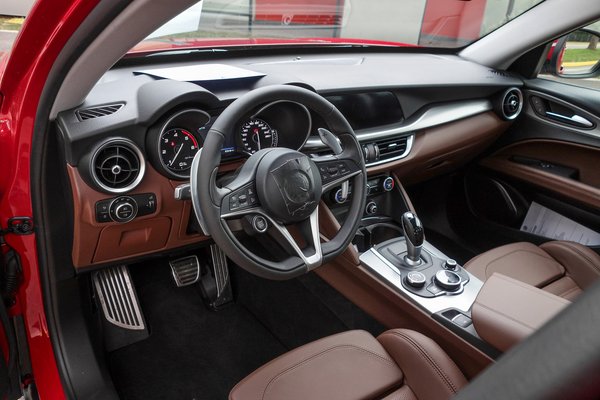 Bár teljes hosszra nem sokkal nagyobb a Giuliánál, hiszen 4,68 méteres, a Stelvio fél-egy árkategóriával feljebb lesz a polcon, kicsivel a vele szinte azonos hosszúságú, de valamivel keskenyebb Macan alatt. Ha már itt tartunk, megadom a többi befoglaló méretet is: 216 centi a szélesség, 167 a magasság. Az új szerepnek megfelelően a belsejét is átdolgozták – a műszerfala egyedi, elegánsabbak benne a betétek, az ülések nagyobbak, kényelmesebbek, a QV-hez pedig s székek megrendelhetők szénszálas szerkezettel is.