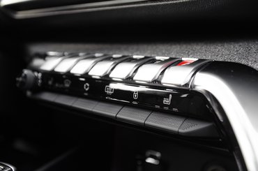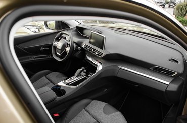 Gyanítom, megmarad a feszesség, a műanyagok sem úgy néznek ki, mint amik csúnyán készülnek öregedni, szóval én inkább az utasoldali borítást félteném. Amíg sofőrnek lenni tényleg királyság az i-Cockpitben, a jobbegyben azért van egy kis zavar. Nem volt elég az alumínium élekkel az optikai átverés, hogy fizikailag is meglegyen ez a körbeölelő érzés a vezetőnek, a középkonzol jobb felét vastagon megpakolták műanyaggal. Az utasoldalon így előretolt üléssel, vagy hosszú combokkal az ember térde vagy a középkonzol íves tövének feszülve pihen, vagy marad a hosszútávon csípőgyilkos, ablak felé néző térdes üléspóz.