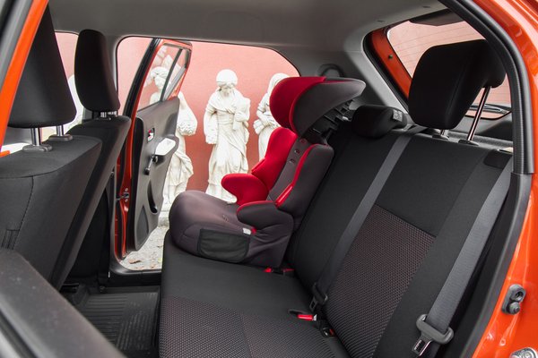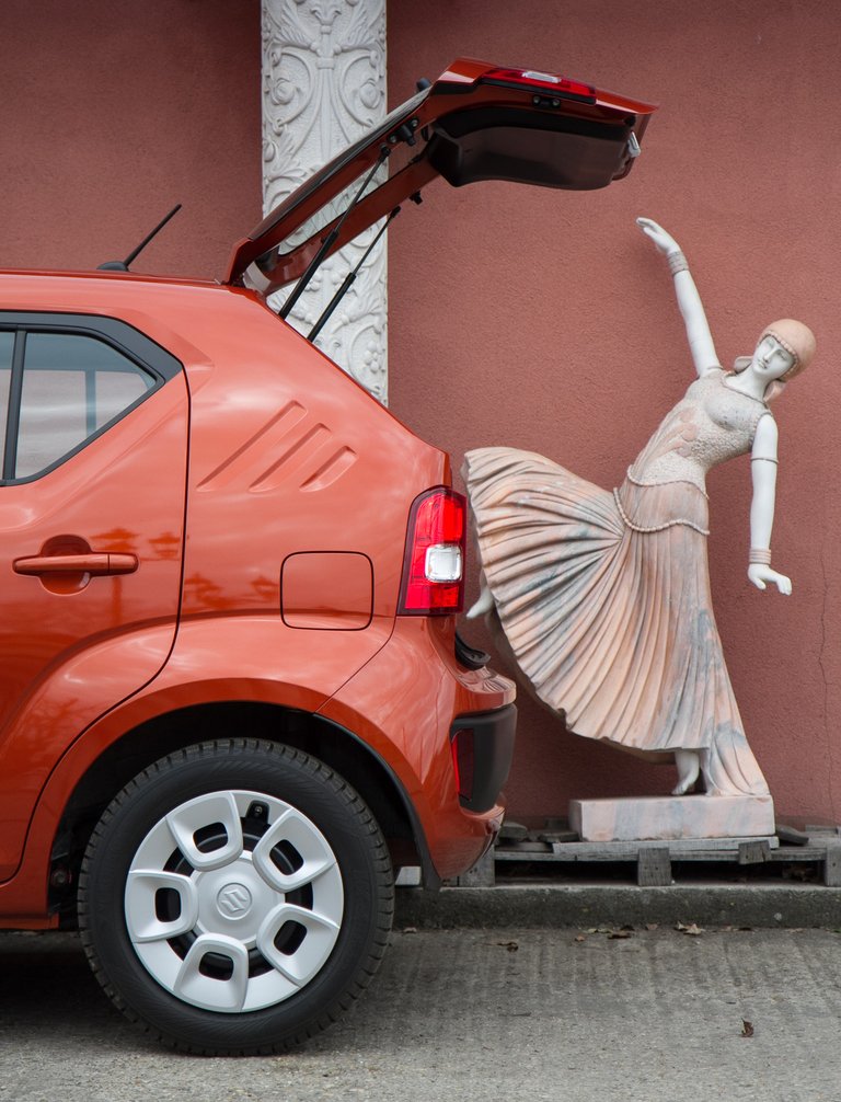 Ha viszont nem nézegeted a belét, kiderül, hogy semmi több: jó helykínálatú autócska, hiába szokatlanul rövid. Felfelé terjeszkedik, mint egy toronyház, és amíg egy 12 centivel (!!!) alacsonyabb Skoda Citigóban/VW Up-ban hátul csak so-so fér el az ember, addig itt szellősen. Mellesleg van egy 267 literes csomagtartója is, ami még pár éve teljesen átlagosnak számított egy kisautónál, ma már inkább a 300 a menő, ez egy szatyornyi különbség. Az Ignisben maximum amiatt érdemes aggódni, hogy tolatáskor mi bújik meg kétoldalt, a hátsó tetőoszlopok takarásában; ez az ára a dizájnnak. Aki ült már polikarbonát dizájner székben, tudja, hogy ennél sokkal súlyosabb következménye is lehet egy-egy formatervezői ámokfutásnak.