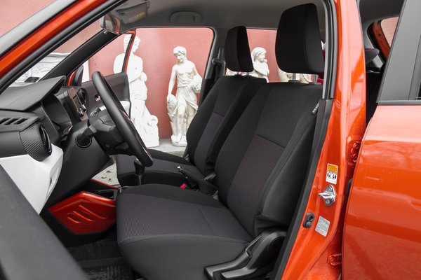 Valójában sokkal többet nem is érdemes az Ignisre költeni, mert abban a pillanatban, hogy GL+-ra ugrik a szint (+350 ezer), ugyan szélesített kerékjáratok, sötétített hátsó üveg, érintőképernyős-tolatókamerás multimédia kerül a kocsiba, viszont a tologatható hátsó ülőpad 50:50 arányban osztott, emiatt az ilyen kocsi kapásból négyszemélyes. (Mekkora hülyeség már?!) Ennyit semmiféle tili-toli nem ér, Európában el kell felejteni, hogy egy autó nem ötszemélyes – alig használják így a kocsit, de évente egyszer nagyon tud fájni, hogy valakit nem lehet elvinni hátul szorongva. Legalább lehetne választható opció, de itt fix csomagok vannak.