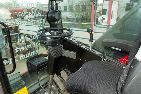 A gépkezelő kényelmes helyzetből felügyeli a folyamatot: a klimatizált fülke a silómaró szállítószalagjától balra van, csupa üveg, kilát minden irányba. Kint hiába száll a por, bent ebből nem sokat érzékel. Ahova nem lát a kezelő, oda kamerát szereltek, nemcsak a tolatást, a keverőcsigák működését is figyelheti egy képernyőn. Az irányításhoz kell egy kis érzék, mert a gép olyan hosszú, mint egy szóló autóbusz, de sokkal szűkebb helyeken mozog.