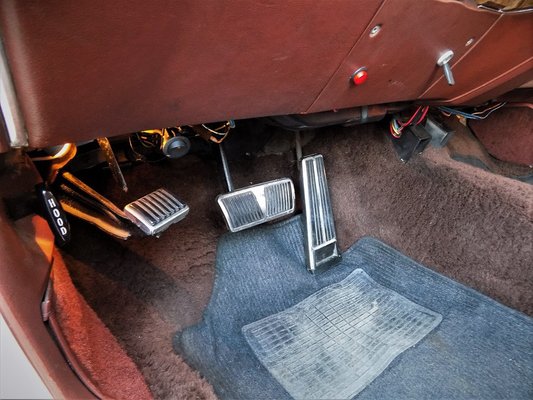 A sofőr ülését minden irányba lehet elektromosan állítani, még az ülőlap dőlésének szögét is. A tükröket is villannyal lehet vezérelni. Az ablaktörlő kapcsolója a műszerfalon, a világítás bekapcsolásakor pedig egy nagy gombot kell kihúzni, flipperből kigyógyultaknak tilos kipróbálni, mert visszaesnek. Alatta a tempomat kapcsolója, mely funkció a hosszú, egyenes utak hazájában annyira szent dolog, hogy nem lehet eleget áldozni az oltárán, így az index bajuszkapcsolójával is lehet azt kezelni. Jelek helyett még minden ki van írva, van is ehhez bőven hely mindenhol. Gyári rádió a helyén, de a műszerfal alá már került egy új fejegység. A kormány fel-le állítható manuálisan, a kézifék pedig lábbal tiporható. A kesztyűtartóba nem lestem be, nehogy olyat lássak ott, ami miatt elkap a klán, de biztosan fejedelmi méretű. A műszerfal egyszerű, a kereszt meg lóg a kendő mellett a tükrön. Ideje beindítani a motort.