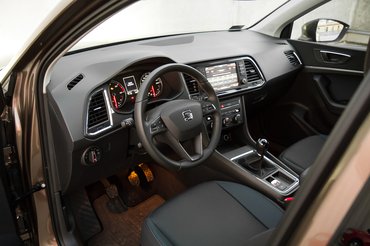 A Seat formatervezői ritkán élhetik ki magukat, a Volkswagen-maszk Seatra cserélése után egy kicsit még művészkedhetnek a hűtőrács mintázatán, aztán kifújt. Külsőre a legmaradandóbb élmény a visszapillantó alól földre vetített Ateca sziluett, vagyis a parasztvakítás szótári illusztrációja. Az utastérben sem törték össze magukat, ez tulajdonképpen egy az egyben a Leon műszerfala és kezelőszervei, ami bántóan ingerszegény, de jól átlátható, a kezelés nem okoz majd gondot. Érzésre közel sem olyan avítt, mint a Qashqai, de nem is olyan, mint a Peugeot űrhajója, viszont ezt érezni a legjobban összerakottnak a három közül.