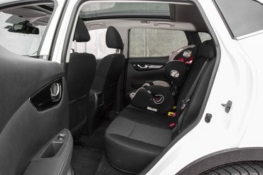Önmagában az utasteret illetően sincs miért szégyenkeznie a Qashqainak. Tisztes, izgalommentes iparosmunka, egy-két szánalmas részlettel: a belső világítás kapcsolóit például csupán óvodáskorú gyerekeim kedvelték, ők is csak azért, mert kedvenc Duplójukat idézik. De a műszerfal áttekinthető és egészen finom tapintású, puha anyagból készült, a kapcsolókat ott találjuk, ahova elsőre is nyúlunk értük, az ülés elég nagy és kényelmes, bár kissé ez is puha. És a puhaság, ami műszerfalborításnak jó, ülésszivacsnak kevésbé előnyös. A helykínálat elöl kellemes, hátul kissé szűkös: ugyan nem a Peugeot 3008-asi értelemben, de például az Ateca azért tágasabb autó a Qashqainál. A csomagtér a Nissan által megadott 439 liternél is kisebbnek tűnik, dupla padlója pedig nem sok hasznot hoz, hiszen alig pár centi magas üreget fed.