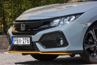 Ezzel a külsővel azonban nincs minden teljesen rendben. A nagy fekete betét (a Camaro-pofa) folyamatos, fancsali kifejezést kölcsönöz a kocsinak, az Audi R8-stílusú farrészben bazáriasan vakok a rácsok, amúgy meg az egész autó grafikája kicsit durva. A hondások még mindig túltolták az ívekkel, lapításokkal való játszadozást. Sokkal-sokkal jobb ez az új változat az előző Civicnél, de leginkább az arányai, nem pedig a részletmegoldásai miatt. Mellétesz az ember egy európai kocsit vagy akár egy Mazdát, és az egész mögött a felkészületlen, lámpalázas tanuló hebegését érezni az évzáró felelésen.