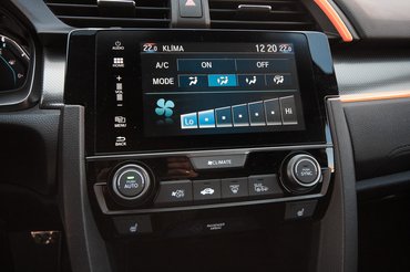 Sokkal-sokkal szimpatikusabb a belső tér, ami folytatja azt a techno-vonalat, amit az űr–Civic elkezdett, de épp annyit visszavetek belőle, hogy most már emészthető legyen. Az irányvonal nagyon hasonlít ahhoz, amit a Toyota tol a C-HR-rel, de nekem a Civicé kiforrottabb, áttekinthetőbb, s a furcsaságában nekem otthonosabb is. Mindenesetre itt mindent azonnal kezelni tudtam, tetszett az is, hogy a Honda nem spórolta el a tolatókameránál a segédvonalak kormánnyal együtt mozgatását, igaz, azt viszont utáltam, hogy egyetlen tekerőgombot nem hagytak a hangerőnek – sem a panelen, sem a kormányon. Pedig a hifis cégek és az autógyártók már vagy tizenöt éve rájöttek, hogy a volumét tekerni jó, nem pedig nyomkorászni...
