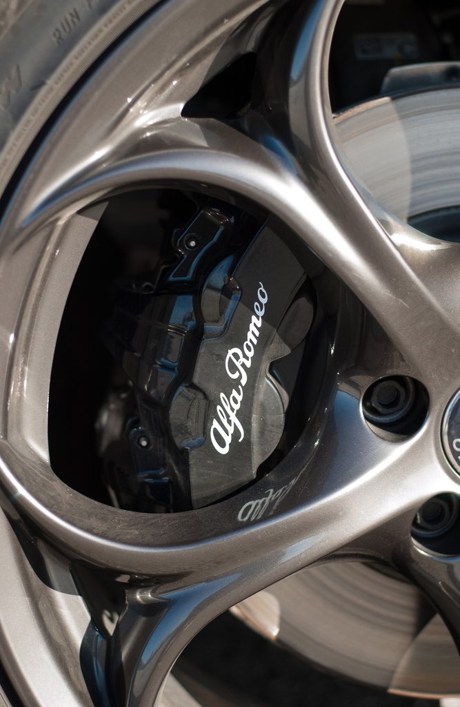 És az a felni! Ha valaha felni megért 315 ezer forint felárat, akkor ez az. Testetlen, súlytalannak tűnő műtárgy, egyszerre telefontárcsa, lóhere, csokornyi boldog luftballon, és közben olyan filigrán, hogy szinte átlátszik.Talán hogy még könnyebb legyen rácsodálkozni az Alfa Romeo emblémás féknyergekre (elöl négy büszke dugattyúval).