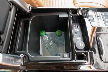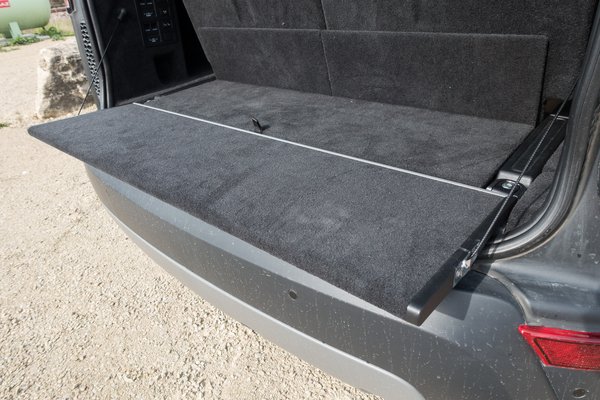 Hely tehát van bőven, a csomagoknak is – bár hét üléssel fent csak egy széles, nem túl mély csík marad nekik. De ha csupán csak a két leghátsó széket elveszejtjük, máris 926 liternyi a raktér (egy ledöntött ferdehátú mérete), ha pedig mind az öt hátsó ülés fekszik, már 2038 liternél, azaz két kompakt kocsi teljes térfogatnál járunk. Egyéb tárolóhelyek vonalán sem találkozni szűkmarkúsággal: összesen 45 liternyi pakolóhelyet számoltam össze 21 különféle rekeszben, melyek között szerepel a két kesztyűtartó, a hátsó üléseknél elhelyezett rekeszek, illetve a klímapanel felhajtása után hozzáférhető, rejtett üreg is. Hat darab 12 voltos kimenet, hat darab USB-csati tolja túl már a felfoghatatlanba az elektronikus eufóriát.