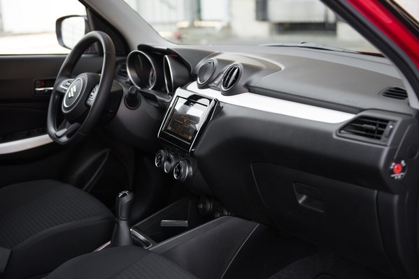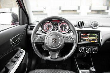 Vannak szép új színek is, mint a lángvörös gyöngymetál, ami már a kandírozott mandarinzselészínű áramvonal határesete enyhe flip-flop-hatással, és a suzukisok kérésre, vagy pénzbedobásra nagyon sokat tudnak szónokolni a rétegrendről. A másik új szín is menő lesz: kobaltkék metál, de egy ilyen lebegő tetőhöz az eltérő tetőszínek is sokat adhatnak. Ha közvetlenül ülünk át a vasalóból az újba, és miért ne ülnénk át közvetlenül, amikor a Vasaló Phase II., alias globális 2. olyan ritka, hogy szinte nem is létezik, szóval a közvetlen átülés rengeteg hasonlóságot mutat. Csak belül is kicsit részletgazdagabb lett a Swift, mint volt.