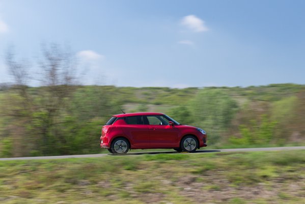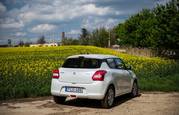 Valahogy az volt bennem így a Civicből jövet, hogy a négyhengeres a drágábbik motor, úgyhogy amikor először megküldtem az országúton, az bukott ki belőlem, hogy baszki, ez nem is erősebb. Nem hát, mondta Mátyás, hiszen papíron gyengébb is: csak 90 ló és 120 Nm. Ez a Swift olcsóbbik motorja – bár az árát még nem tudjuk, valami 300 ezres különbség lesz. Árban olyasmi, mint az Opel hagyományos büntető paleolit szívómotorjai a látványos indulóárhoz, de műszakilag nagyon nem. Többször cseréltünk, és egyetértettünk, hogy érzetre semmiképpen nem gyengébb, még a nyomaték sem hiányzik. Ez egy nagyon jó motor, ráadásul ez még kultúrlényként is üzemel. Jól szól, pörög, alul sem punnyad, és hát a kanyartulajdonságokat sem befolyásolja hátrányosan, hiszen a plusz két deci hengerűrtartalom az nulla, ráadásul turbó sincs rajta. És mondom, annyit fogyaszt ez is, mint a literes háromhengeres turbó a mild hybrid rendszerrel, ami egy negatív KERS: nem ad a teljesítményhez, csak elvesz a fogyasztásból.