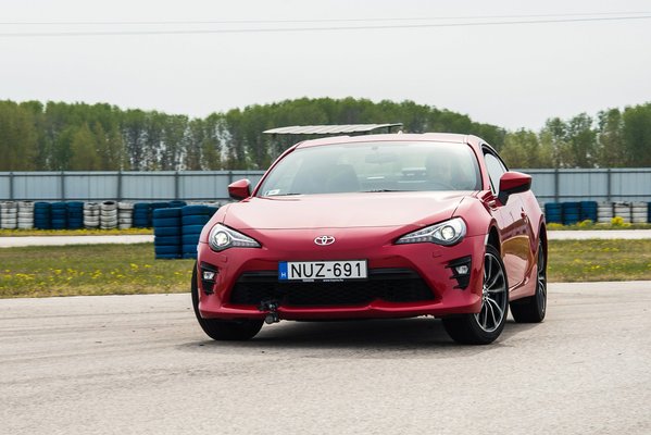 Versenypályán mindig a maximális fordulatszám környékén dolgozik a motor, így a Toyota teljesítménytöbblete érezhetővé válik, különösen, hogy hosszabb áttételezése, kevésbé tapadós gumijai jobban illenek az Euroringre. A hosszú, nyújtott másodikos kanyarokat olyan szögben és tempóval rajzolja körbe, ahogy csak a pilóta megálmodja. Kitartóbb a GT86 fékrendszere, bár azt is teljesítőképessége határára lehet hajszolni, a gyorsabb és pontosabb kormányzás, a minimális karosszériadőlés miatt az egész pályázás önfeledt móka és kacagás. Minden a helyére kerül, az alacsonyabb üléspozíció, a vasmarokként szorító sportülés és az ölbe húzható kormány értelmet nyer, még a karcos váltó sem zavaró.
