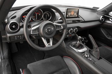 A Mazda egy mérettel kisebb, de modernebb és igényesebb autónak érződik. Utasterében a felhasznált anyagok, a Recaro ülés borítása, a Bose hangrendszer, a 7 collos, színes kijelző grafikája és az iDrive-hoz hasonló menüvezérlés mind egy korszakkal frissebbnek hat, mint a GT86 hasonló egységei, megoldásai. A benyomást erősíti, hogy az MX-5-höz kapható néhány vezetési segédberendezés is. Automata távfényvezérlés és adaptív, LED-es fényszóró rendszer mellett a holttérfigyelő és a sávelhagyásra figyelmeztető olyan kiegészítő, amin a puritánok felháborodhatnak: mit keres ilyesmi egy roadsterben?