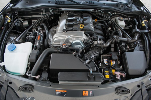 A Mazda MX-5 RF (a Retractable Fastback rövidítése) kemény teteje és kupé formája ellenére továbbira is a nyitott autózás és a hajat borzoló tavaszi szél élményt kínálja két utasának. Tetőmegoldása az aktuális 911-es Porsche Targa változatát idézi, körülbelül ¾-es méretarányban. Nagyon színpadias, ahogy a hátsó szélvédőjét és vastag oszlopait megemelve eltünteti lemez tetejét. Az egész művelet 13 másodpercig tart, és akár menet közben is elvégezhető, persze legfeljebb 9,5 km/órás sebességgel. A bámészkodókat csodálkozásra készteti az előadás, de a felhasználói élmény nem tökéletes. Mivel az MX-5 kulcsán nincs tetőnyitó gomb, a sofőr kívülről nem élvezheti a showt, ami az ideálisnál pont egy gondolattal tovább is tart: a vászontetős MX-5-ös kézzel, egy szempillantás alatt hátradobható tetejéhez képest hosszú a 13 másodperc.