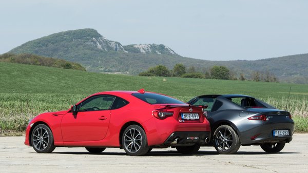 Hiába hasonlók, mostanáig nem voltak közvetlen riválisok. A világ kedvenc roadstere – egymillió példány fölött járnak –, és a Totalcar kedvenc sportkupéja eddig nem zavarta egymás köreit. A Mazda MX-5 hatmillió forint körül kapható, apró, szigorúan kétüléses roadsterként, a Toyota GT86 nagyjából 9 millió forintos, 2+2 üléses, használható csomagterű kupéként hozta el a fogékonyaknak a japán sportautózás és a hátsókerékhajtás örömeit. Aztán megjelent a keménytetős MX-5 RF, és hozzádrágult a ráncfelvarrt GT86-hoz. Nekünk pedig ennél kevesebb ok is elég lenne egy összehasonlító teszthez.