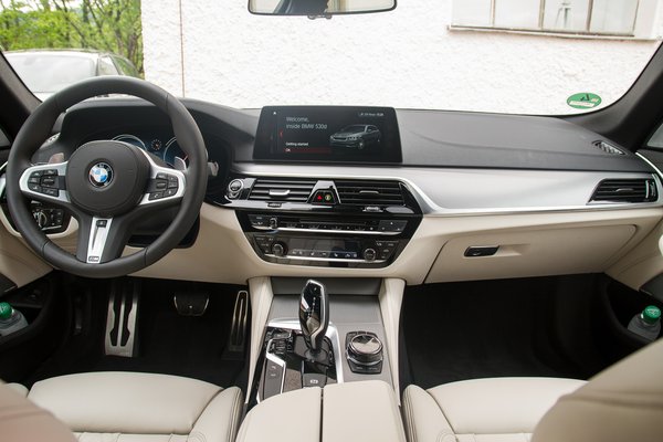 A másik újdonság a 20d motorvariáns, ez egy kétliteres, 190 lerós turbódízel, 400 newtonméternyi nyomatékkal. Ezzel kezdtük a próbakört és nagyjából két kilométer után lett világos, hogy ennél több csak akkor kellhet, ha valamit vontatnánk. Az 520d 7,8 másodperc alatt éri el a százat, igaz, csak a nyolcsebeséges automata váltóval, a hatsebességes kézivel 8 másodperces gyorsulás. A sebességmérő digitális tűje ebben is könnyedén hagyja maga mögött a 200-at, ráadásul némi kellemetlen hang csak addig érezhető, amíg be nem melegszik. A München környéki dombokon autózva sem maradt hiányérzet, annyira jól hangolták össze a motort a váltóval, hogy nem találtunk olyan forgalmi szituációt, ahol zavarba jött volna.