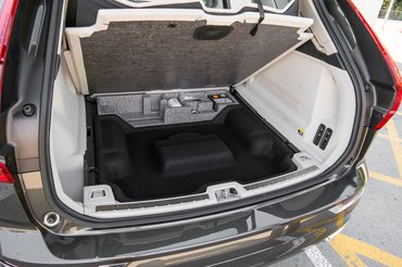 Azt szerencsére nem felejtette el senki az R&D-irodában, hogy a régi XC60-as nem volt jól eleresztve hátsó fej- és lábtérrel – ebbe a mostaniba belelapátolták a centiket, bőven, elhihetik, alaposan kipróbáltam. Ettől nem lett kisebb elöl sem a hely, de még a csomagtartóba is belepasszíroztak bő húszliternyi űrt – itt kezdjük el érteni, miért jó, hogy olyan kompakt méretű a hajtáslánc.
