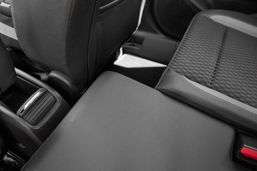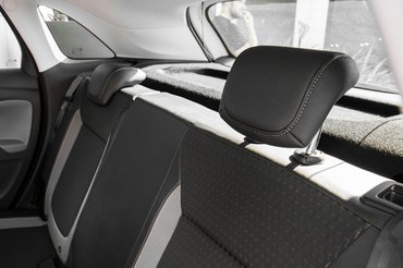 A hátsó pad már kevésbé ortopéd: alacsonyan van és teljesen sík, ami egyébként nem hátrány, ha gyerekülést kell betenni. A mi autónkban volt tologatható pad is, 15 centivel lehet előrébb húzni a hátsó sort, más kérdés, hogy ilyenkor már megszűnik a lábtér, ellenben a 410 literes csomagtartó hirtelen 520 literesre nő. A háttámla szöge is állítható. Az alap üléshez viszont csak kettő fejtámaszt adnak, ami gáz.