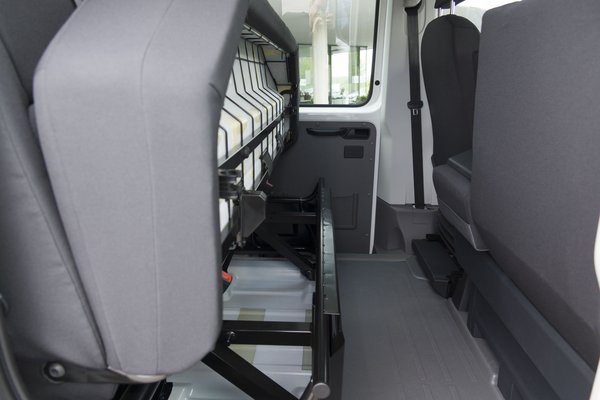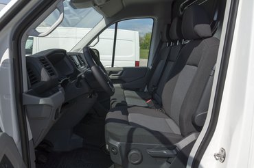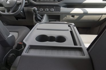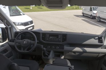 Belül a szabvány VW-műszerfal és kezelőszervek fogadnak. Itt is megjelentek a személyautós dolgok, mint például a két, illetve busz kivitelnél a háromzónás klíma. Végtelen tárolóhelytengert találtunk, főképp az ülések alatt, bár a Doka (duplakabinos kivitel) verzió hátsó ülése alatti tárolóhelybe lényegesen kisebb résen át tudunk bepakolni, mint mondjuk az 1991-es LT-be. Cserébe itt már a bal oldalon is van ajtó hátul.