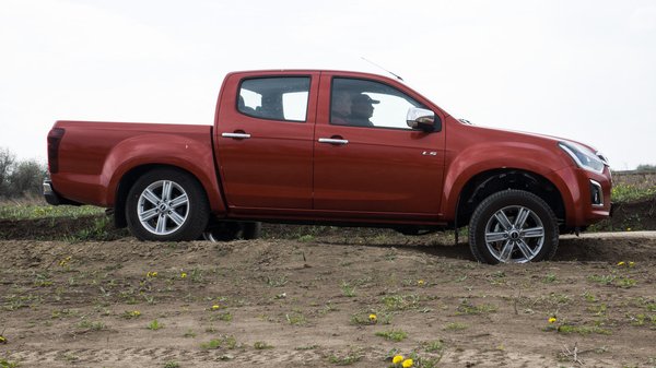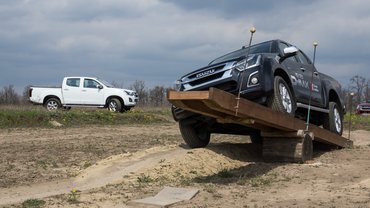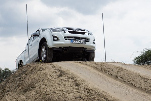 Az alapfeladatok elsősorban azt hivatottak bemutatni, hogy bár ez nem terepjáró, de egy jó terepjárási képességekkel rendelkező teherautó. Bár az esemény előtt sokat esett, aznap pont nem, és a szél gyorsan kiszárította a talajt, így a látványos sarazás elmaradt. Azért így is akadt olyan terep, ahol megnézhettük, mit tud a D-Max, ha nem az összes kerék tapad. Nos, körülbelül ugyanúgy viselkedett, mint az egykori SUV tereptesztünkön a tesztalanyok átlózás közben. Kicsit elforog a levegőben lógó kerék, de aztán az elektronikus difi szépen átrántja a problémán.