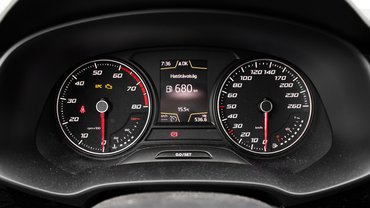 Ízlés kérdése, de én nem bánom, hogy a műszerfal nem digitális kijelzős, a hagyományos műszerek ugyanis gyorsabban reagálnak, leolvasásuk is kényelmesebb, mint a pixellel rajzolt változatoké. De persze ez azt is mutatja, hogy a VW-konszern hierarchiájában a Seat a kommerszebb véglet felé helyezkedik el, hiszen a prémiumnak szánt márkák autóiban már TFT a műszerfal.