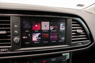 A kidolgozás minősége, a felhasznált anyagok és a beltér designja meg is haladja azt, amit ma az alsó-középkategória átlagának tekintünk, egyedül a zongoralakk feketéjét száműzném végleg – nem csak a Seat Leonból, az autóiparból úgy általában. A modellfrissítés kapcsán elektromos kézifék, és új, érintőképernyős információs és médiaközpont költözött a Seatba, itt is pont olyan klassz használni, mint a VW-konszern bármely másik autójában.
