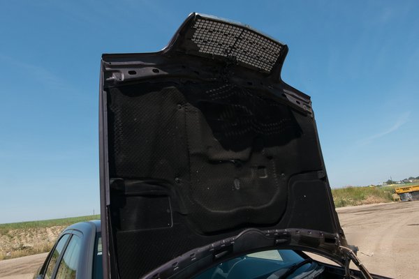 Benézek a motortérbe – szuper a rend, még a géptetőn is megvan a zajszigetelés, semmiféle olyan olajfolyást nem látok, amiért érdemes lenne reklamálni, a gyári patentek, kábelösszefogók, mindenféle biszbaszok mind megvannak. Nézem a hossztartókat, a fényszórók mögötti részt – ez mind veszélyes korróziós pont – de semmi, csak a hibátlan, gyári festék mindenütt. Csak halkan mondom: egy sürgősen, még a nyár szárazságában elvégzett aprólékos rozsdátlanítással, minimális lakatolással, gondos kezeléssel és festéssel nagyobb befektetés nélkül is menthető ez a kaszni...