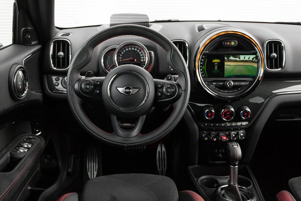 Belül a szippantós kocsinál és a virágkarneválnál is jobb hely az új Countryman JCW, bár az eklektika itt sem marad el. Egyszerre köszönnek vissza a múltidéző ős-Mini stílusjegyek, valamint a sportos és modern vonások. Például a műszerfal közepére helyezett, hatalmas kör alakú kijelző, vagy a repülőgépek billenőkapcsolóihoz hasonló kapcsolósor, közepén a motorindítóval a retro jegyében. A szépen varrott bőr a kormányon és kárpitokon, az alu pedálsor és a sportülések a sportosságot hirdetve, az alcantara huzatok, króm keretek és halszálkás zongoralakk betétek pedig az elegancia és modern stílus hírnökeként vannak jelen a beltérben. És persze a német anyacég, a BMW legszebb modernkori hagyományaihoz méltón a Mini Countryman a tuti kis-SUV azoknak, akinek szeretnek egy raklap pénzt ellocsolni egyedi kialakításra és luxus kiegészítőkre.