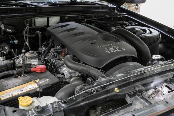 A kulcsot elfordítva az önindító kicsit lustán forgatja meg a 2,5 literes dízelmotort, de nem lehet ráfogni, hogy nehezen indulna. A Ford TDCI motorjainak nincs kimondottan jó híre, de ezt nem a kettőfeles alapozta meg, sokkal inkább a kilométermilliomos Mondeók kétliterese. A 143 lovas négyhengeres a német Spritmonitor felhasználóinak adatai szerint 9-10 liter gázolajjal jár el, amit nemcsak mozgási energiává, hanem melléktermékként zajjá is alakít. Egyáltalán nem lehet azzal vádolni, hogy csöndes lenne, de ha szem előtt tartjuk, hogy haszonjárműben ülünk, simán tűrésküszöbön belül marad.