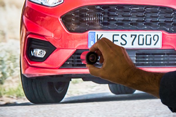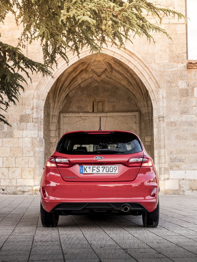 A sajtóanyag szerint a parkolószenzorokat a karosszéria lemezeinek síkjába süllyesztették, a szélvédőmosó fúvókákat eltakarták, és a hátsó rész burkolatán nincsenek látható csavarfejek. A csavarfejeket aláírom, de be kell vallanom, a szenzorsüllyesztés indokolatlan elvárásokat, mondhatni hiú reményeket ébresztett bennem. Azt hittem, megoldódott az ősi probléma, aminek a Kütyüdoktor sem tudta a megoldását, pedig erről szólt a fél Égéstér: hogy miért kell látszania a szenzoroknak? Szinte ez a rész érdekelt a legjobban az egész Fiestában. És erre mi van a lökhárítón? Tök ugyanolyan szenzorok, mint bárhol máshol. A jó légellenállási együttható eléréséért kapott tetőspoilert a kocsi, de a hátsó üveg oldalára is tettek fekete űrhajó-félét. A lökhárítón és a hátsó lámpán is vannak a légörvények leválását segítő megoldások, a kocsi alját pedig leburkolták. Az eredmény a kategória legjobb, 0,287-es értéke, és elég kis szélzaj autópályatempónál.