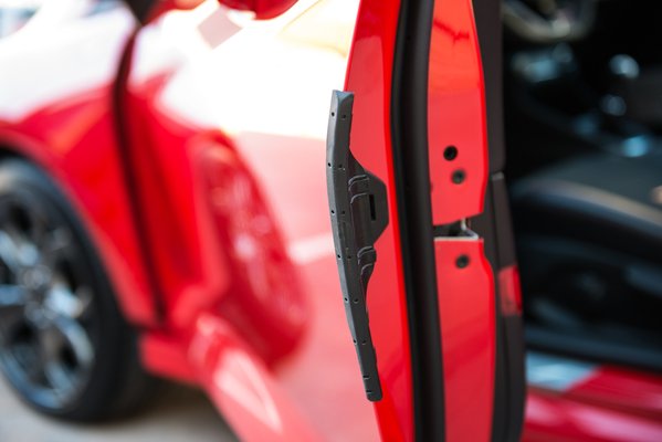 Elöl a MacPherson rugóstagok alsó karjában tököltek sokat a megfelelő szilentet, és végül valami fémházas, a közepében V-kialakítású fémet tartalmazó megoldás adta ki. Ettől jön az az érzék, hogy a kormány mozgatására hej, de élénken moccan az autó, és nem a kormányáttétel miatt. A rugóstag szárát vastagabbra cserélték – Geert szerint a rugózatlan tömegek szempontjából gyakorlatilag mindegy, amikor viszont 100 feletti tempónál kap az autó egy 10 fokos kormányszöget, nagyon nem mindegy, mi támaszt.